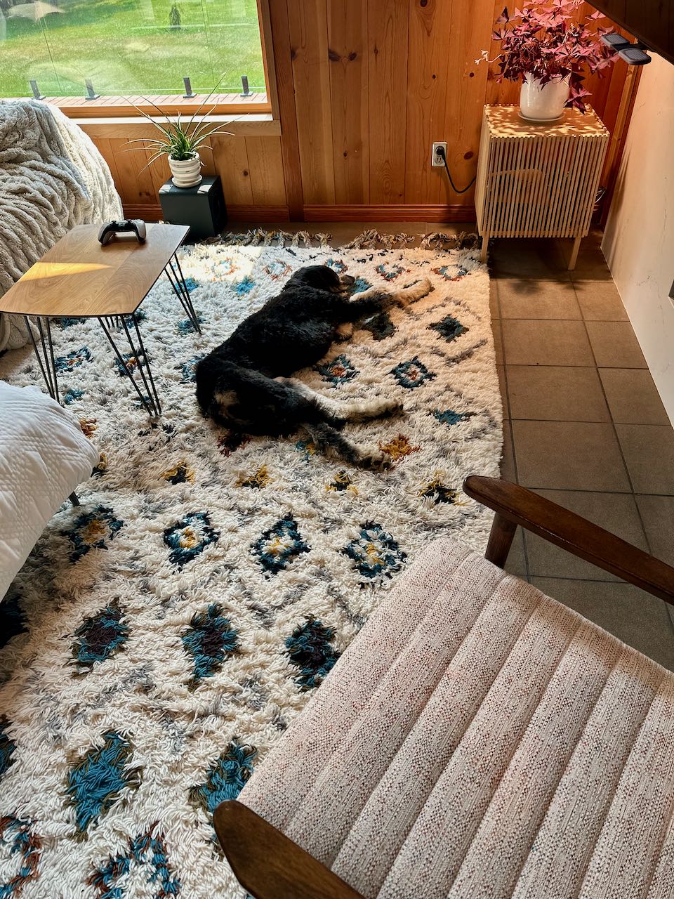 Here are a few of her favourite napping places – the couch, the rug, and the front door.