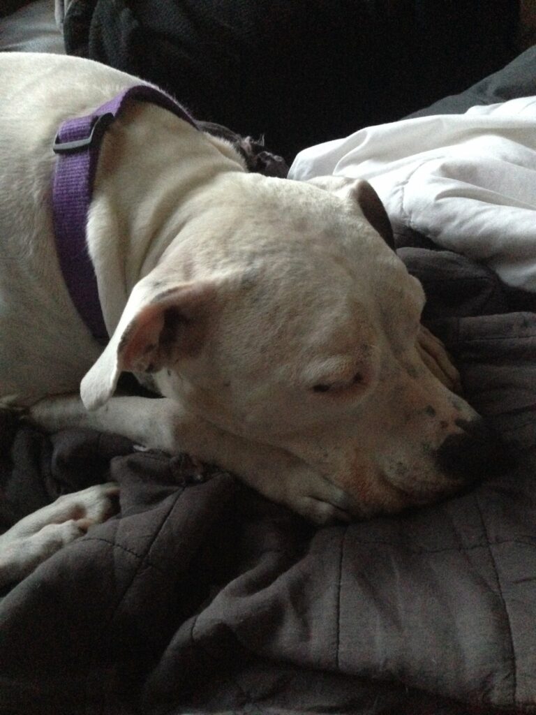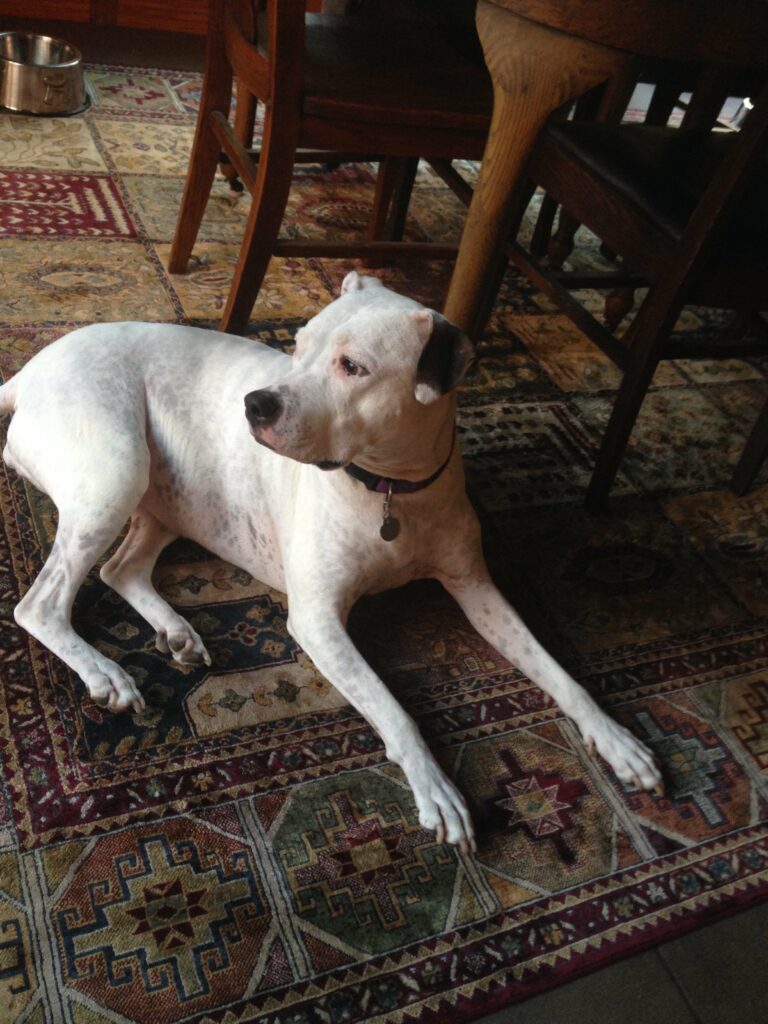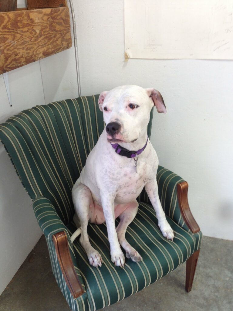 In our garage we have an old red couch and a dog bed. Nope, not good enough for Lexis…she wanted the green chair. Look at her sitting pretty. She also liked laying in the sun, that is until I got out the blankets.