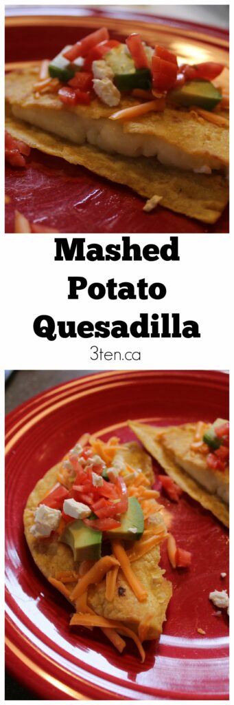 Mashed potato quesadilla – where did this come from? Well, a few weeks back we attended the Taste of Edmonton and my favourite thing was a mashed potato and feta cheese quesadilla. Thus, I decided to make one myself!