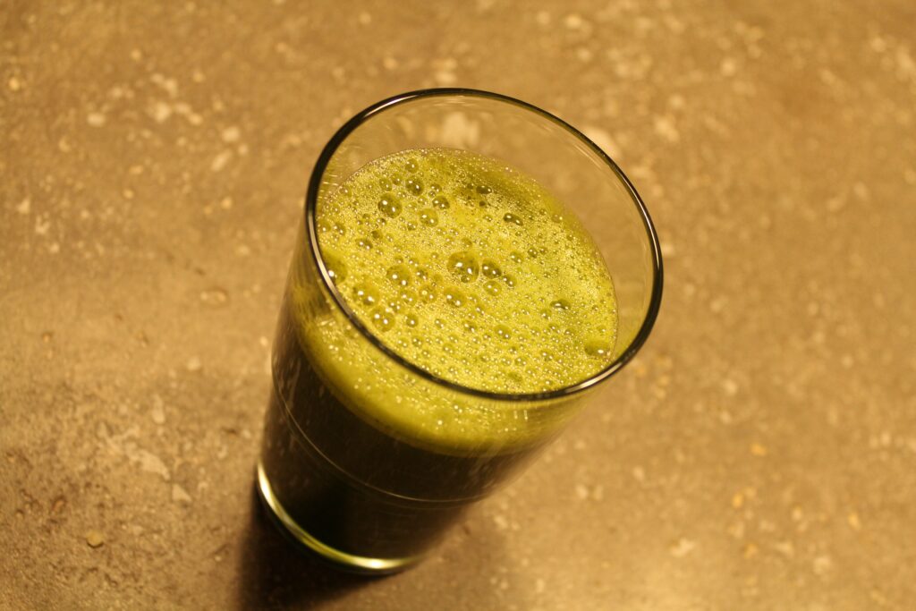 This juice packs in the calcium (twice as much as the first two) – the red pepper not only has calcium but also boron and magnesium for strong bones. The spinach and broccoli help promote healing, with spinach also improving memory and broccoli holding anti-cataract powers. The kale and celery are anticancer and antibacterial. The apple is a liver stimulant and thus a key in detoxification.
