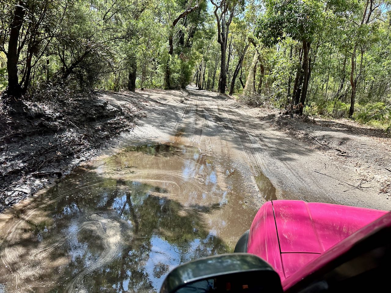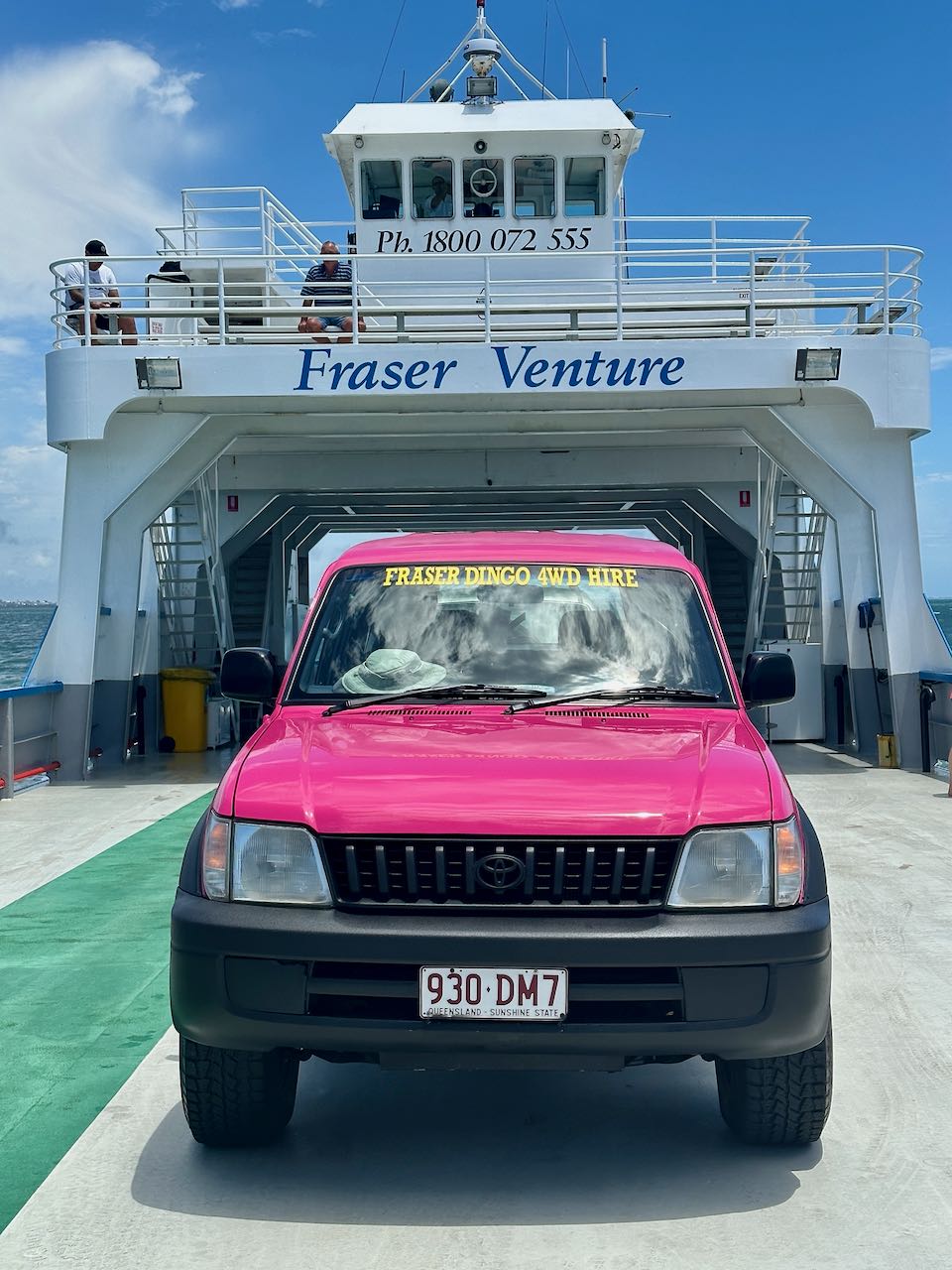 Fraser Island, or what it’s known as now, K’gari – the great sandy national park. It’s a world UNESCO heritage sight and well worth the visit. We opted for a self-guided tour, renting a 4WD pink Toyota to venture around for about 30 hours. We boarded the barge around 11am on a Thursday and left around 5pm on the Friday. It was the perfect amount of time.