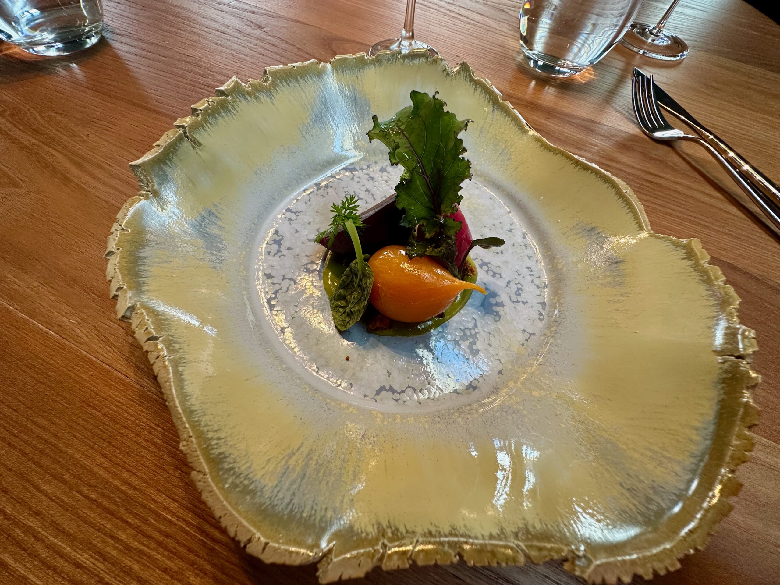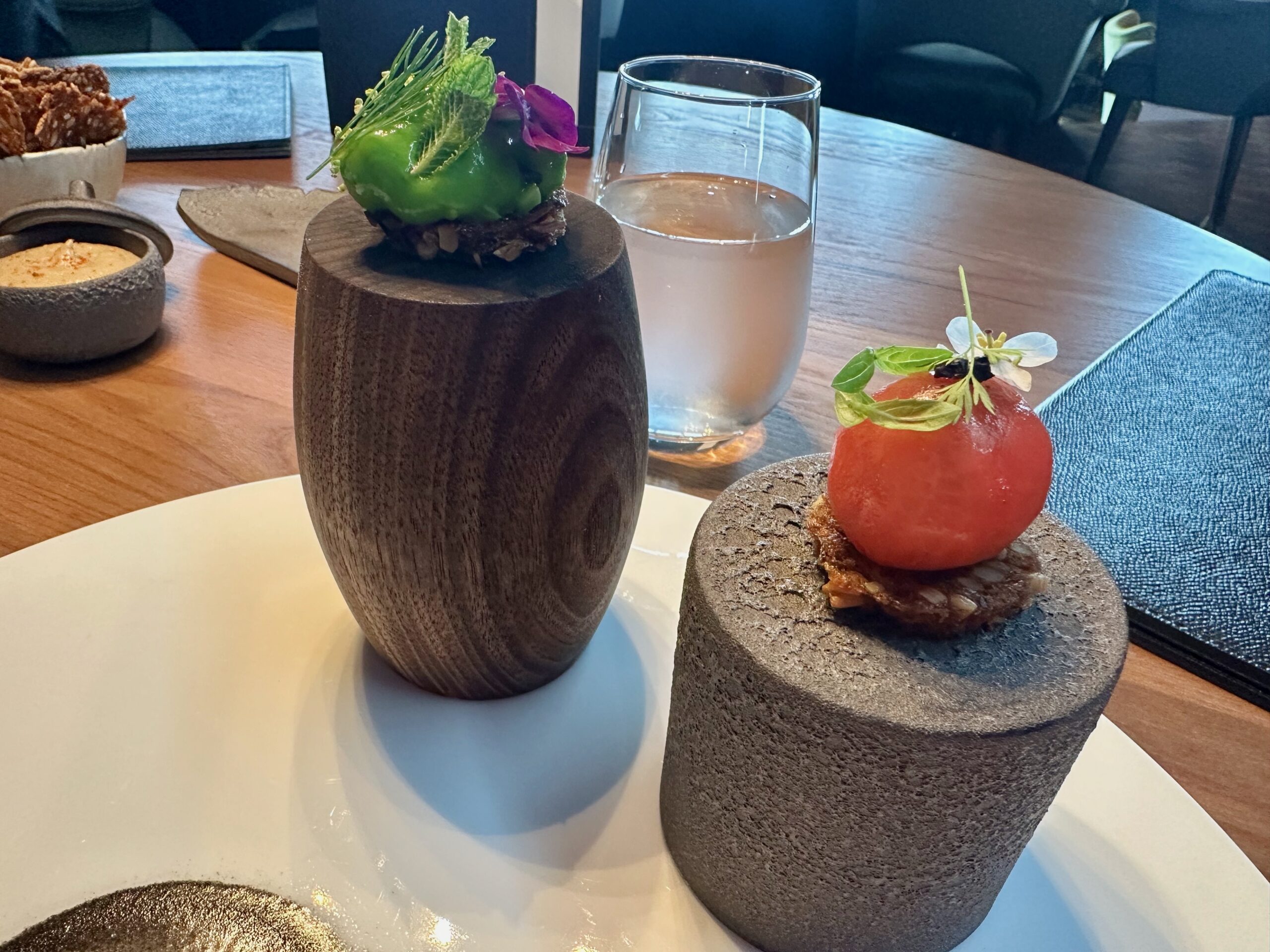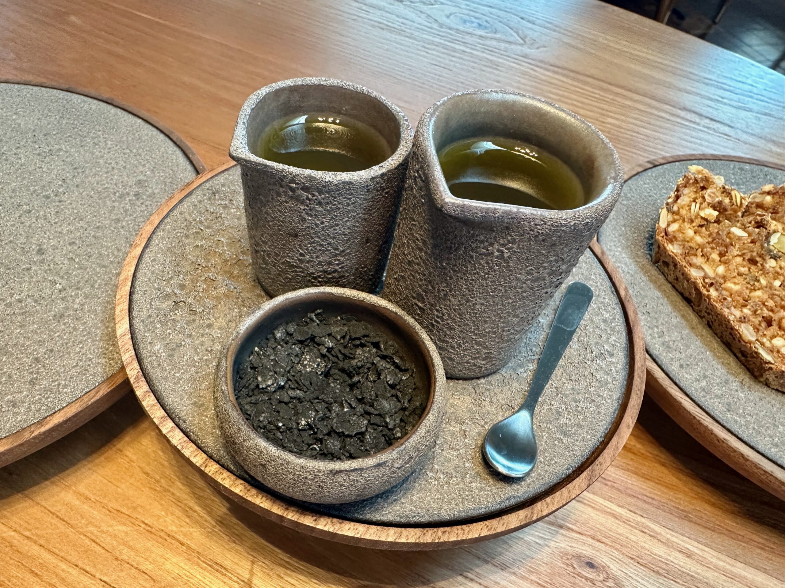 Up first, we were welcomed with an arrangement of fish skin and an earthy hummus, followed by an amuseboosh, topped off with delicate olive oils and bread.