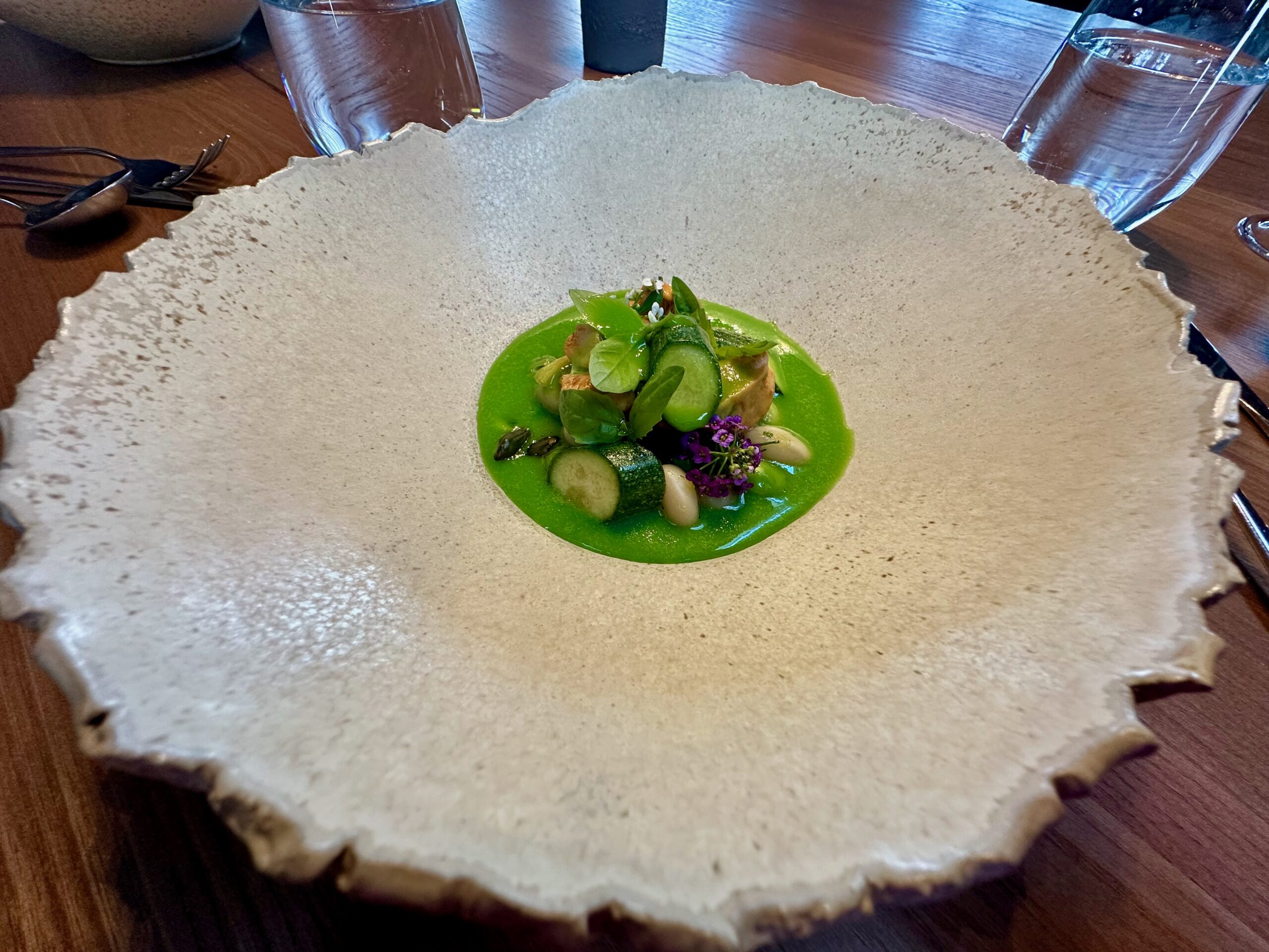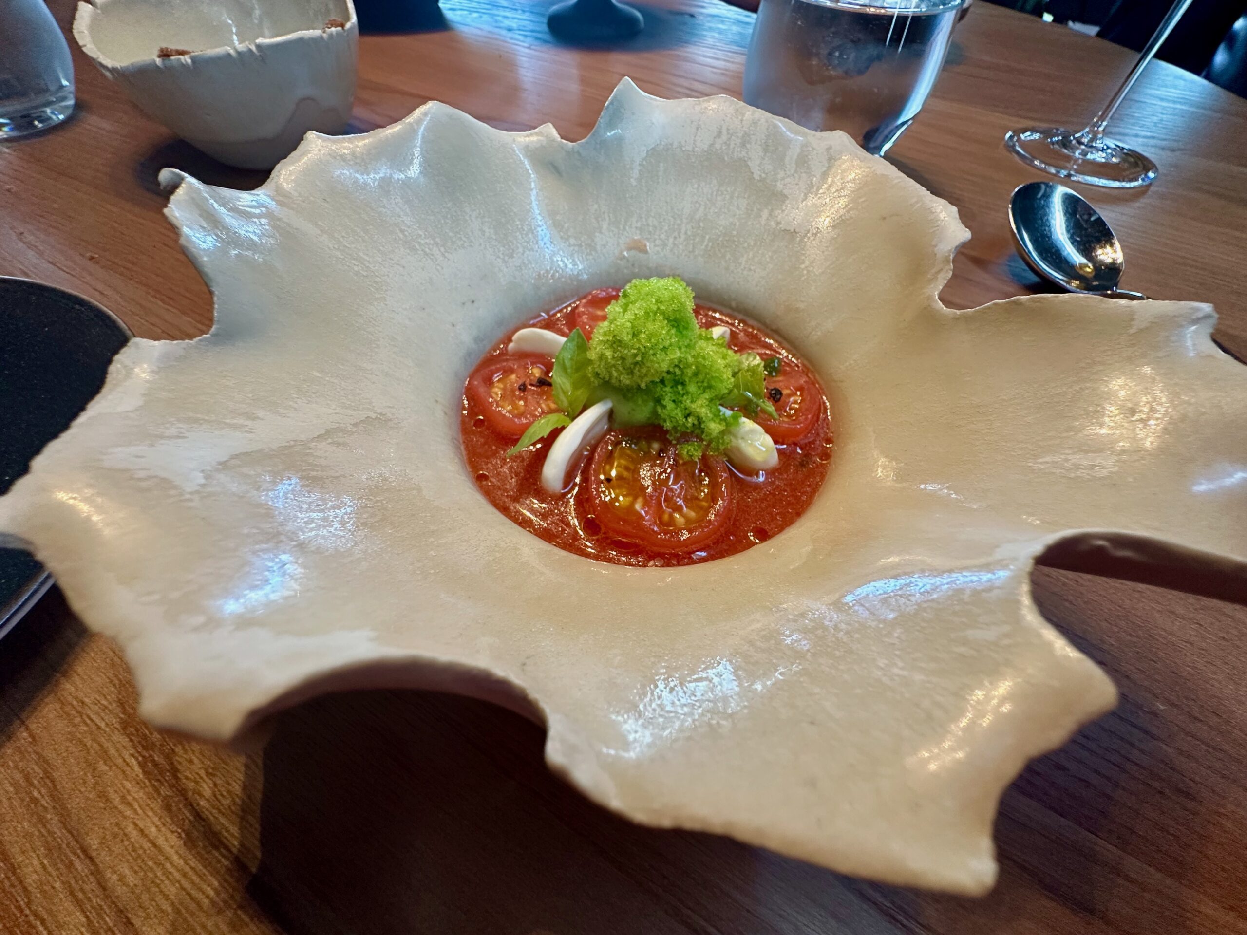 Up next we had a fresh gazpacho with iced herbs and balanced almonds.