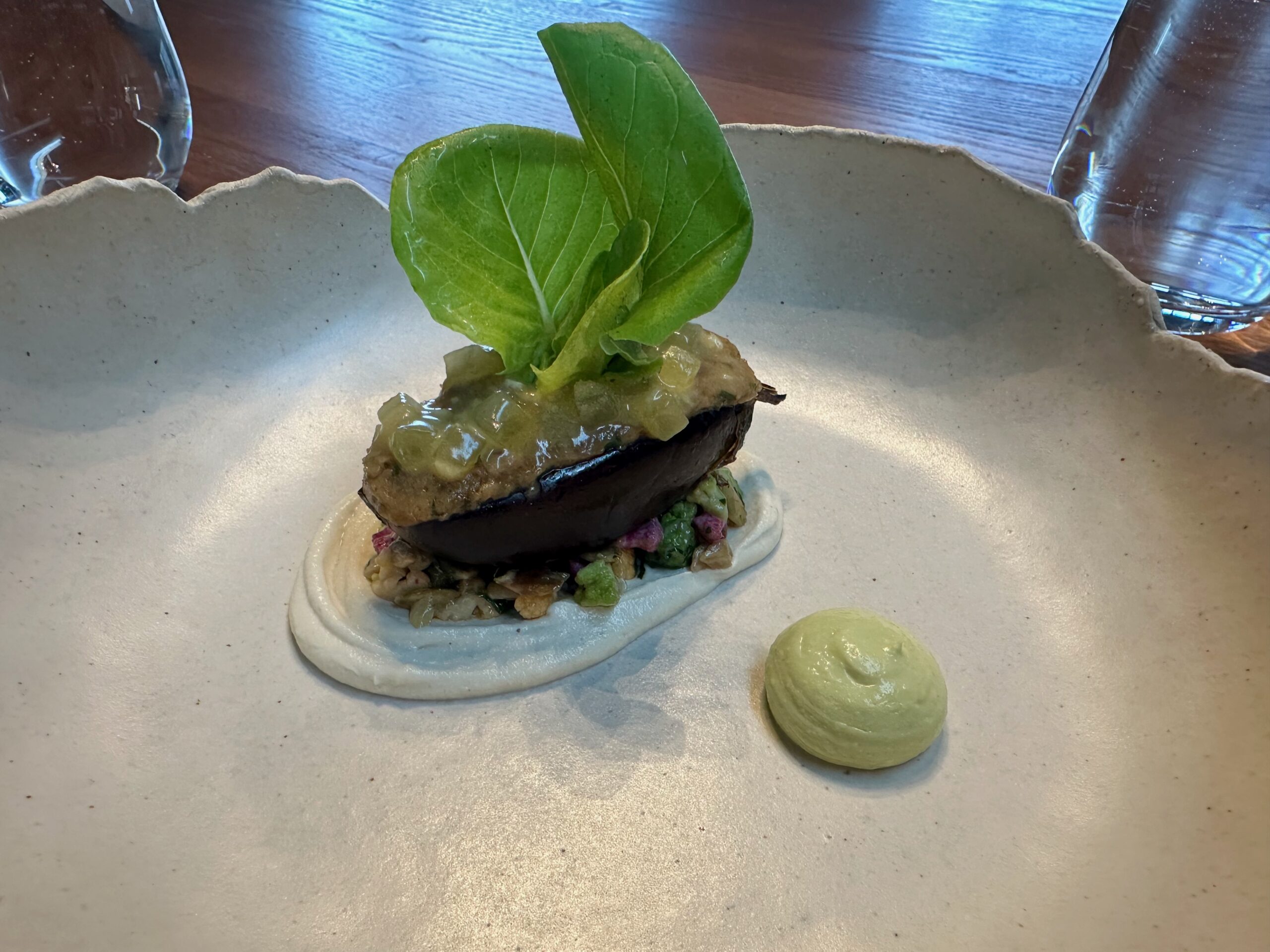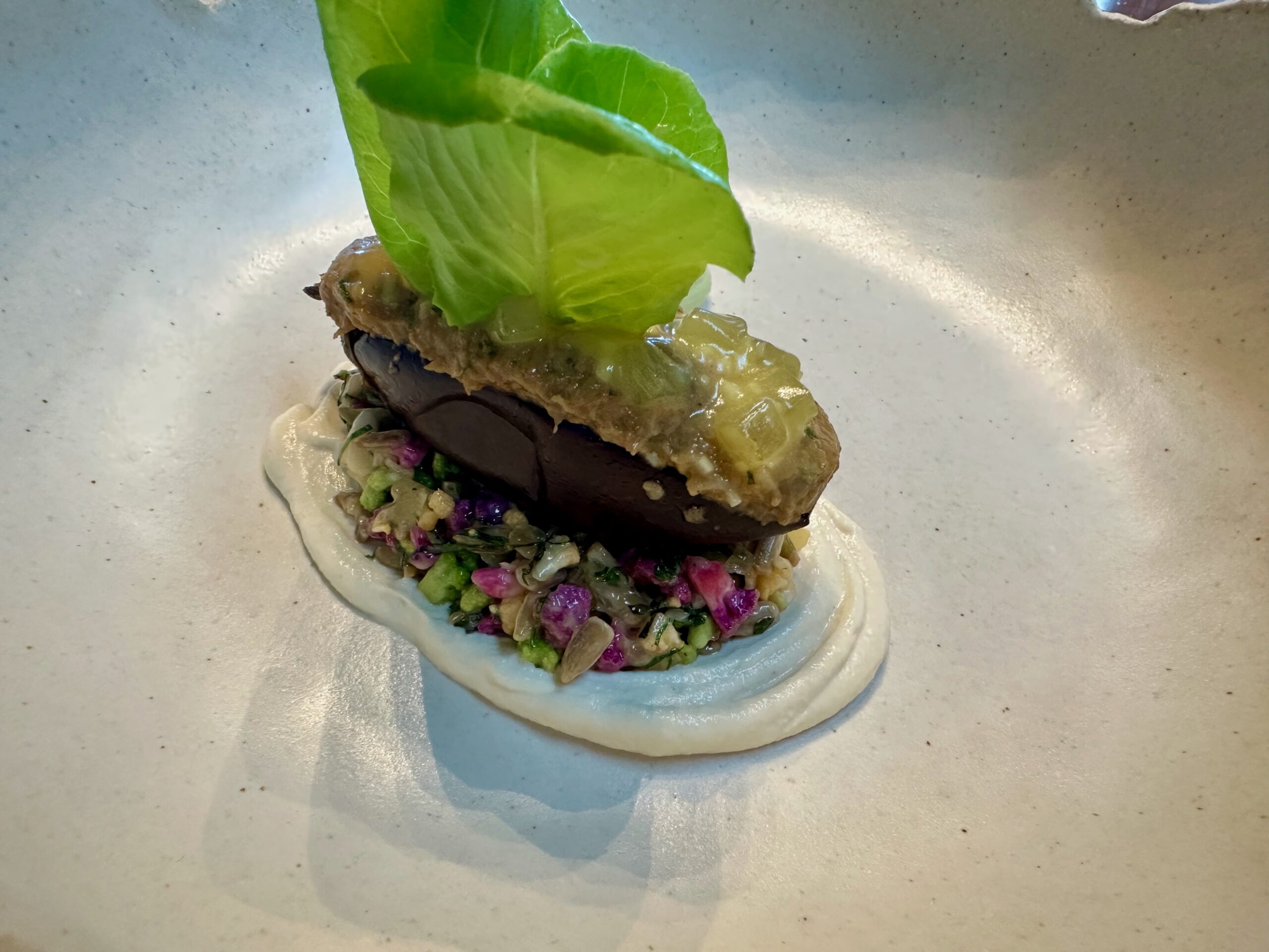 And, along the same lines as the beets, here we have eggplant on cauliflower.
